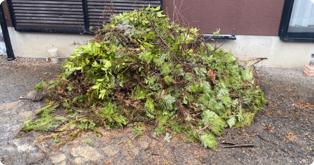 剪定作業で出た大量の枝木や草を回収・処分いたします。